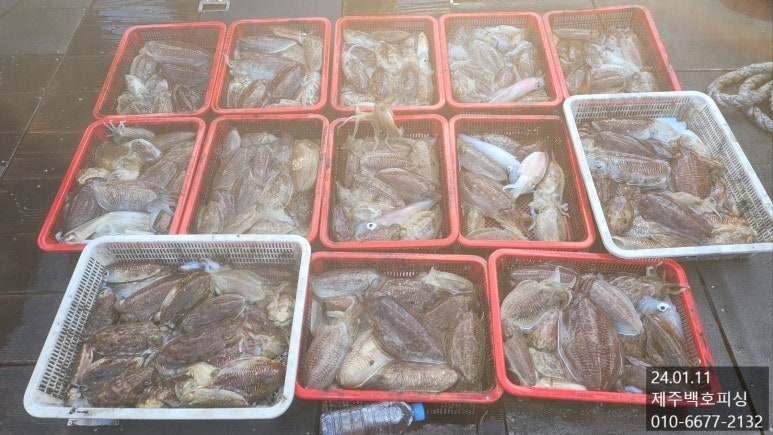 !!!!제주 도두항 백호피싱!!!! 24년 01월 12일 제주백호피싱 갑오징어 조황 올립니다