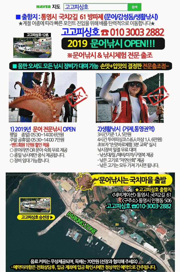 ★고고피싱호 ☎010 3003 2882 출항지: 통영 국치마을에서 출항합니다.