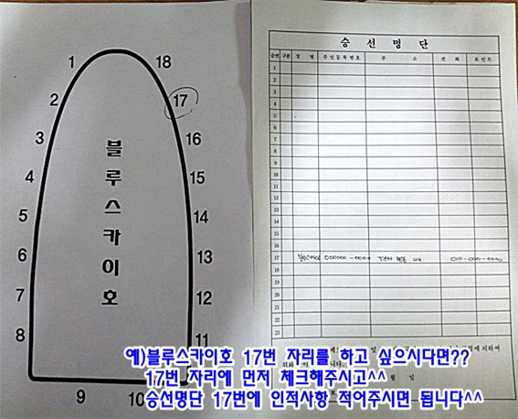 무조건 당일날 아침 오셔서 승선명단 기재순