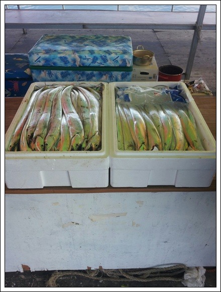 사진에 나와 있듯이 환한 대낮에 갈치가 굵은 사이즈가 잘나와주었네요..